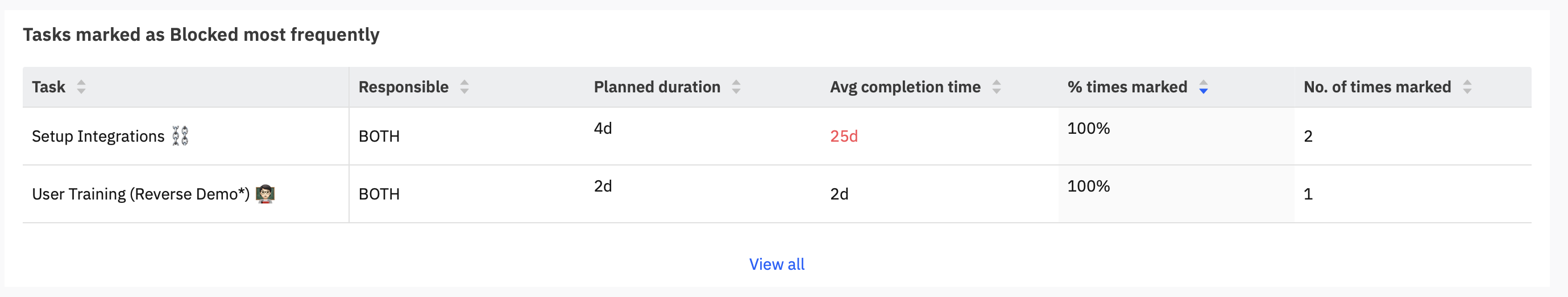 Tasks marked as blocked most frequently: Table