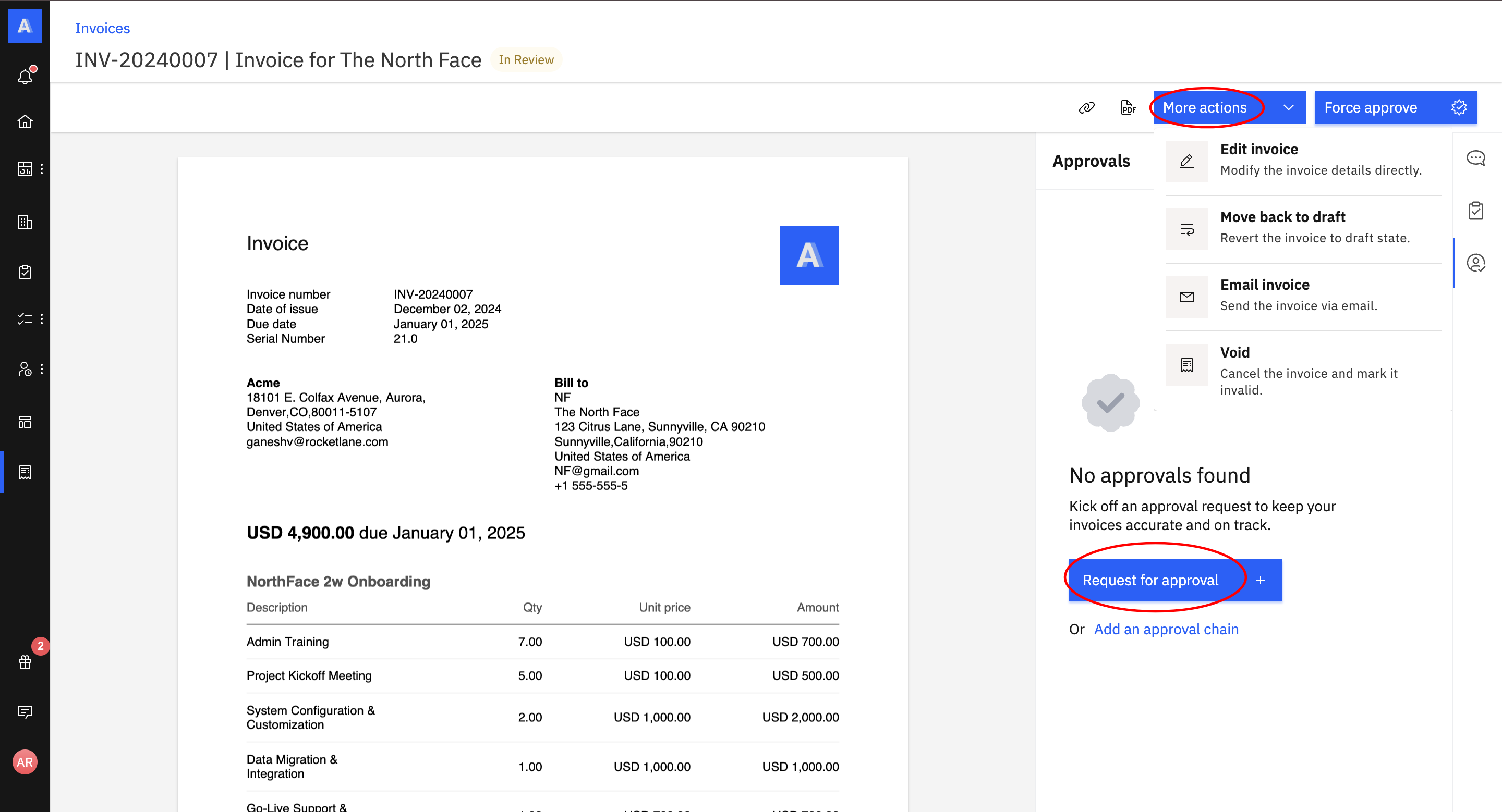 Account: The name of the customer account the invoice is addressed to (e.g., Acme Inc.). This field is mandatory.
