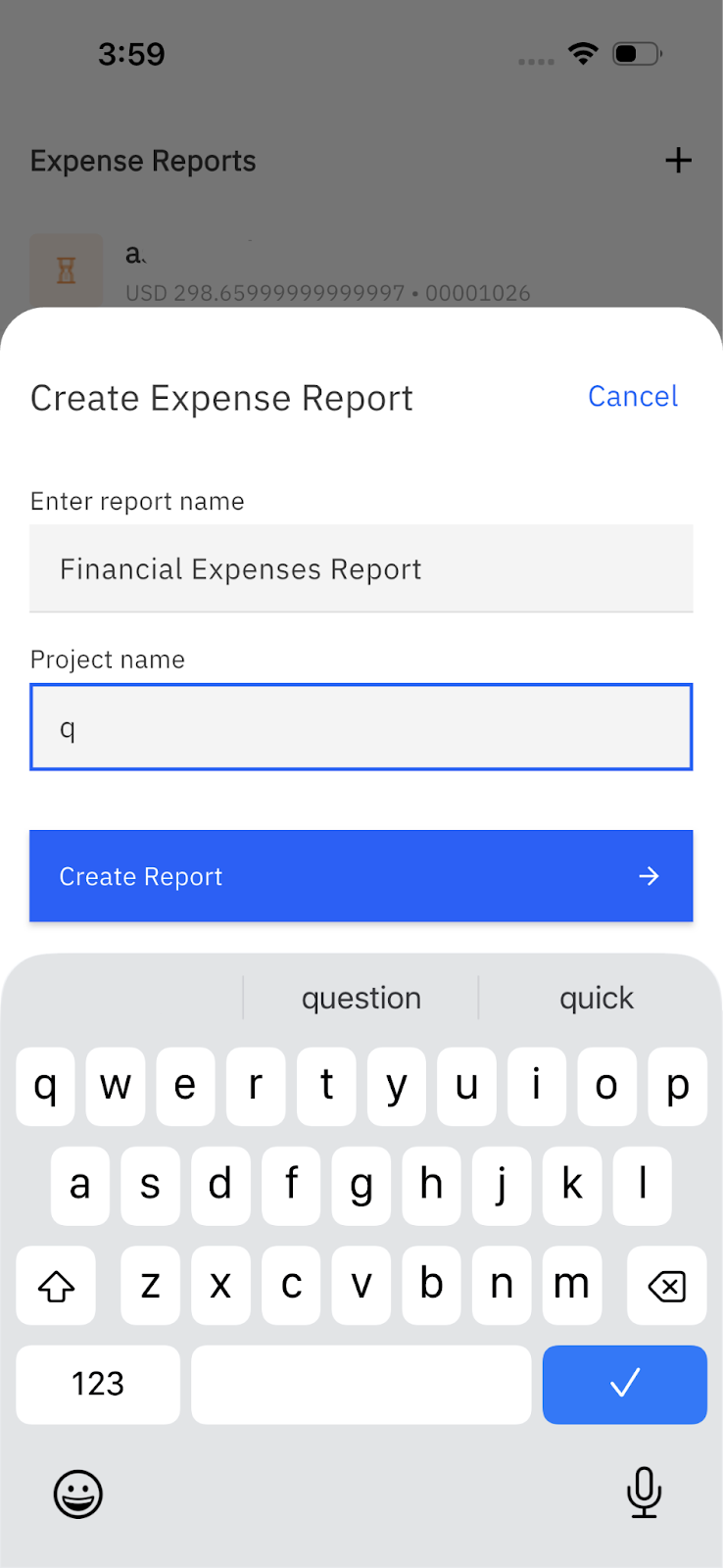 To create a new report, tap the Create New Expense Report. If reports already exist, tap the + icon in the top right.