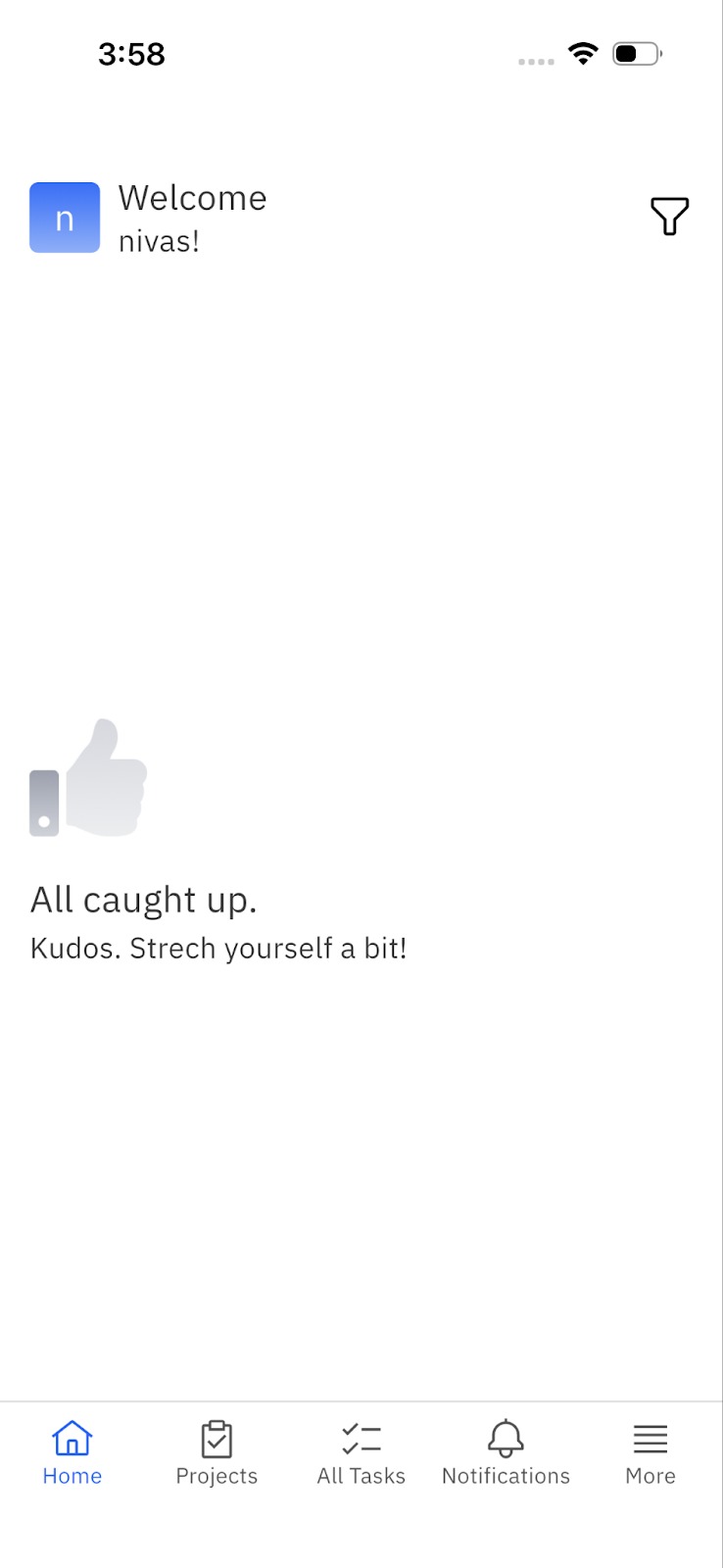 Open the Rocketlane mobile app.The Home page is displayed