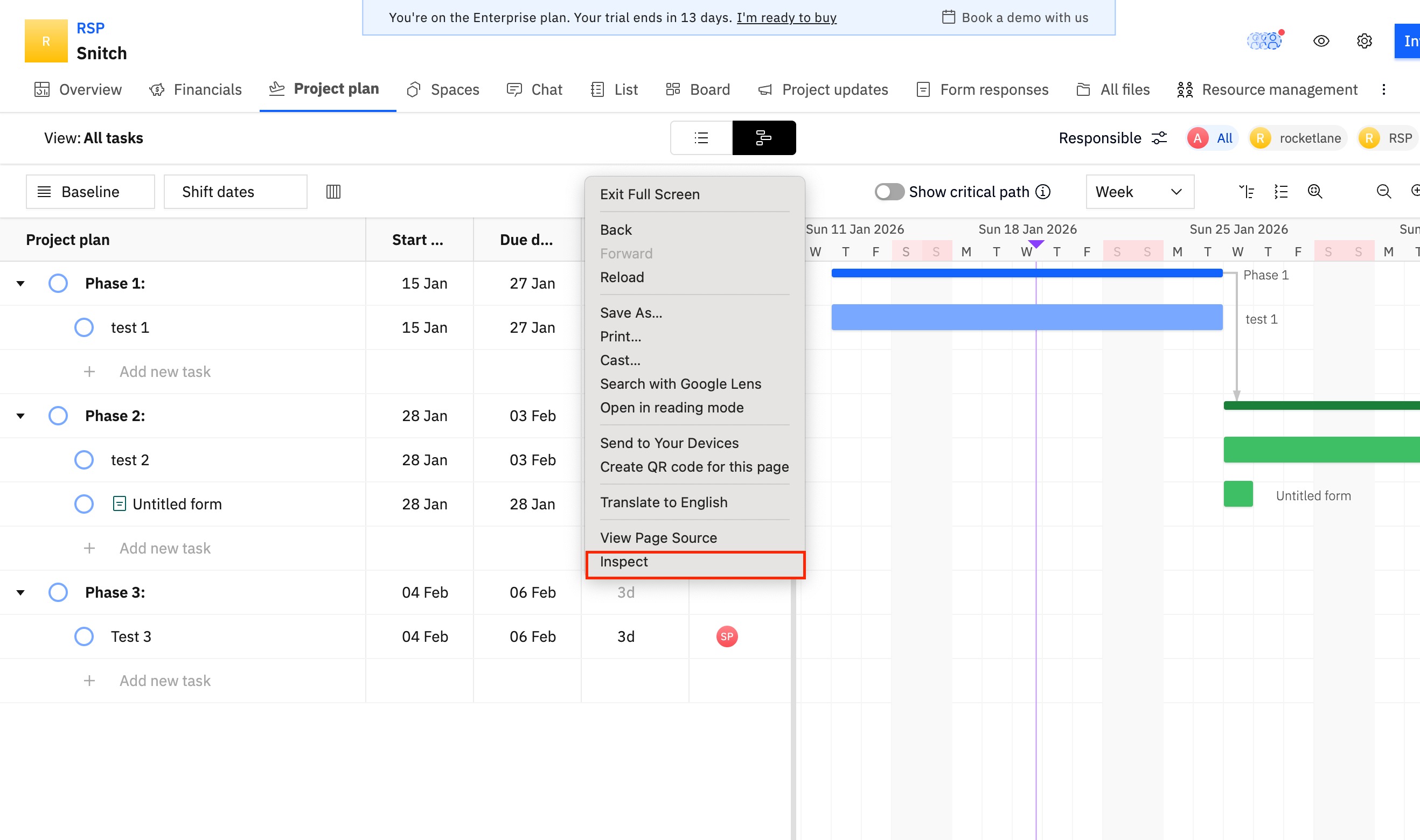 - Kindly open Rocketlane and navigate to the page where the issue is occurring.